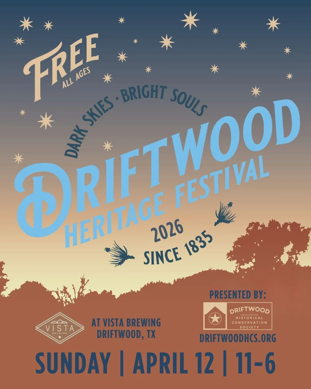 Enjoy a 21-acre Hill Country ranch with live music throughout the day while shopping local vendors and enjoying Vista’s delicious food and drink. Meet members of the Driftwood community to learn about the rich history and exciting future of this agrarian community. Learn about efforts in our community surrounding sustainability, conservation, light pollution, agriculture, and more.