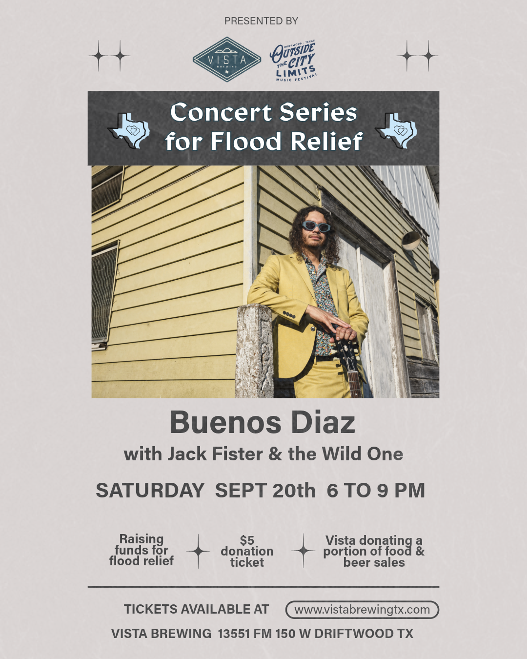 Our hearts are with our Hill Country neighbors. This year, we’re donating a portion of sales during the concert to July 4th Flood Relief. Also, while this is typically a free concert series, we are asking for a $5 donation which goes directly to flood relief.