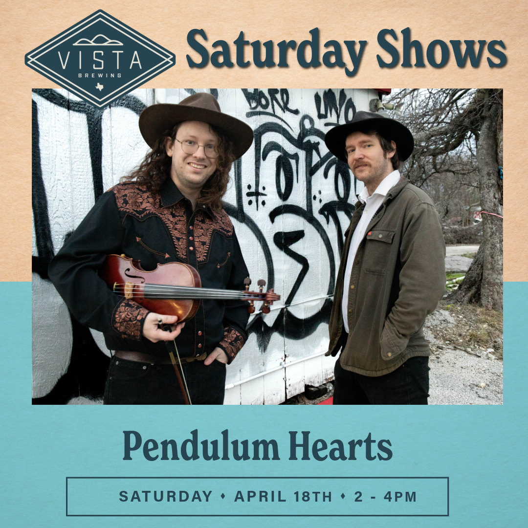 April 18 from 2-4pm: Pendulum Hearts (Western Swing/Jazz trio from Austin, TX)